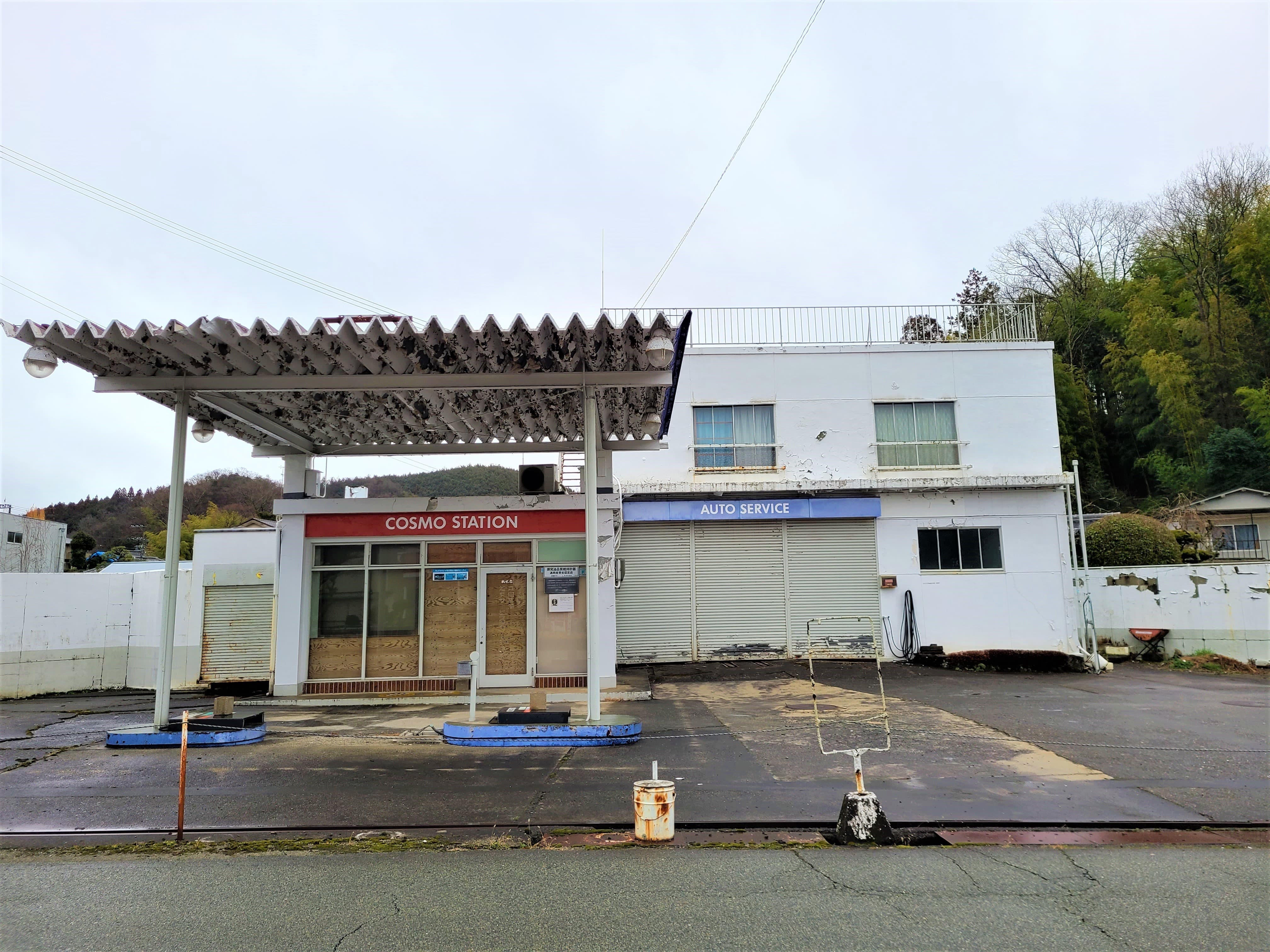 能勢町の廃業されたガソリンスタンド。